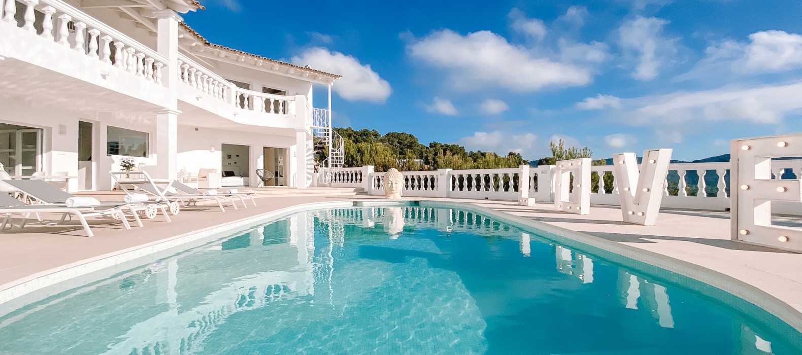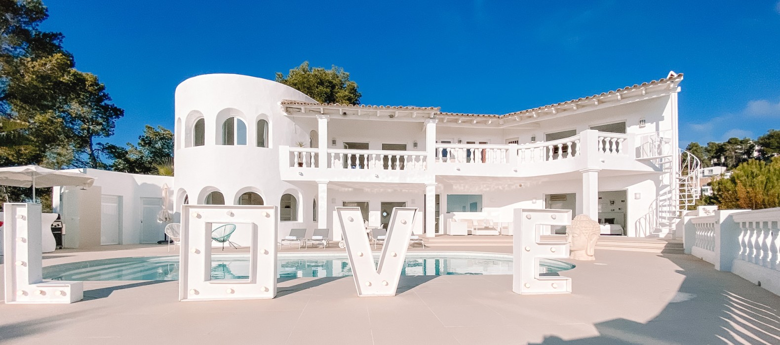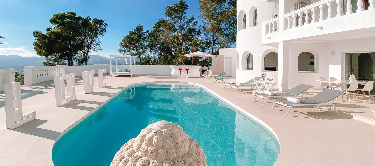 Die Villa The White Pearl thront im Sonnenlicht glitzernd auf dem Gipfel Can Furnets, einer wohlhabenden Gated Community keine zehn Minuten von Ibizas pulsierendem Stadtkern entfernt. Erstmalige Besucher des Anwesens werden durch die endlose Weite des Ausblicks regelmäßig in Erstaunen versetzt. Die perfekt gewählte Lage der Villa The White Pearl lassen Sonnenaufgang und Sonnenuntergang garantiert zum Naturschauspiel werden. Ibiza offenbart sich hier den Gästen des Hauses von seiner besten Seite: magische Farben zeichnen wunderschöne Bilder und surreale Schönheit in den Abendhimmel.